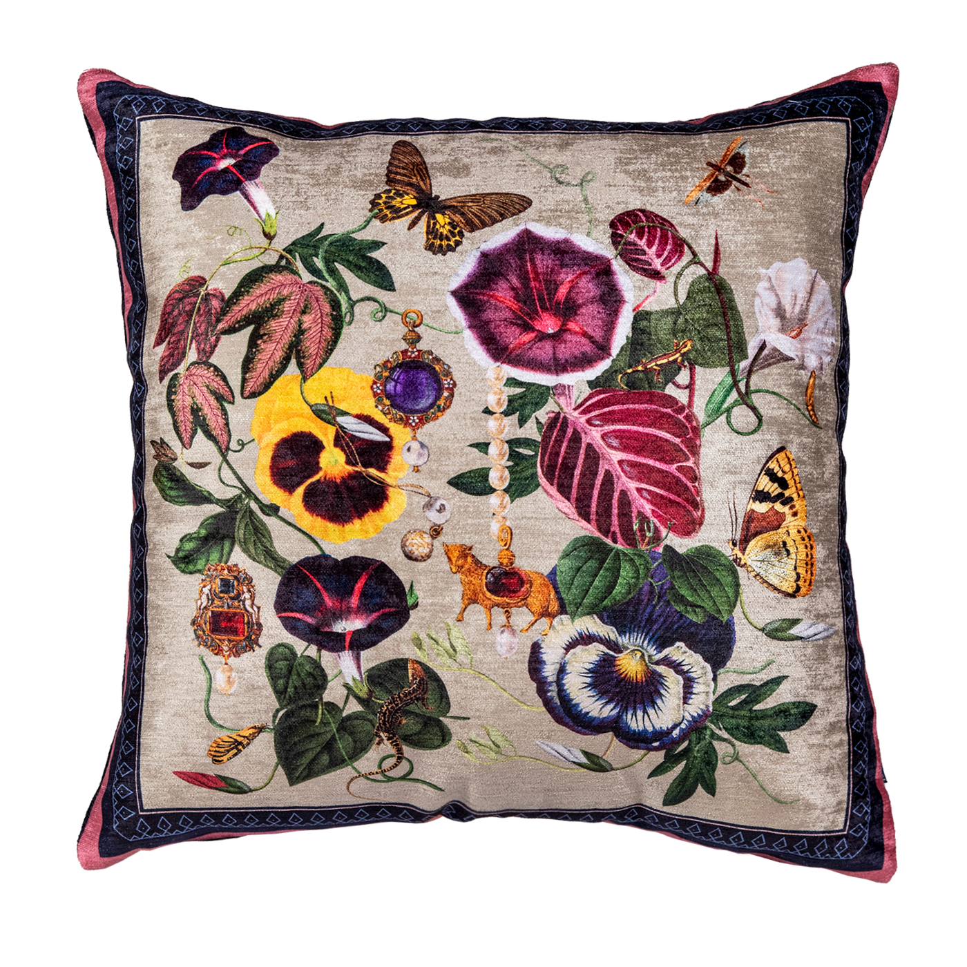 Mezcla y combina diseños y estampados para crear espacios con carácter, textura y mucha personalidad. Confeccionado en terciopelo y decorado con una impresión de sublimación.